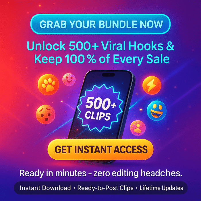 In today’s short-form video warzone, grabbing attention instantly is the difference between viral and ignored.That’s why we created the 500+ Viral Hook Clips Bundle — a curated collection of short, punchy, attention-grabbing video openers designed to hook your audience before they scroll away.